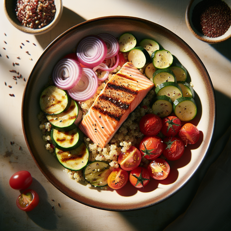 Day 2: Salmon Quinoa Bowl with Zucchini and Cherry Tomatoes