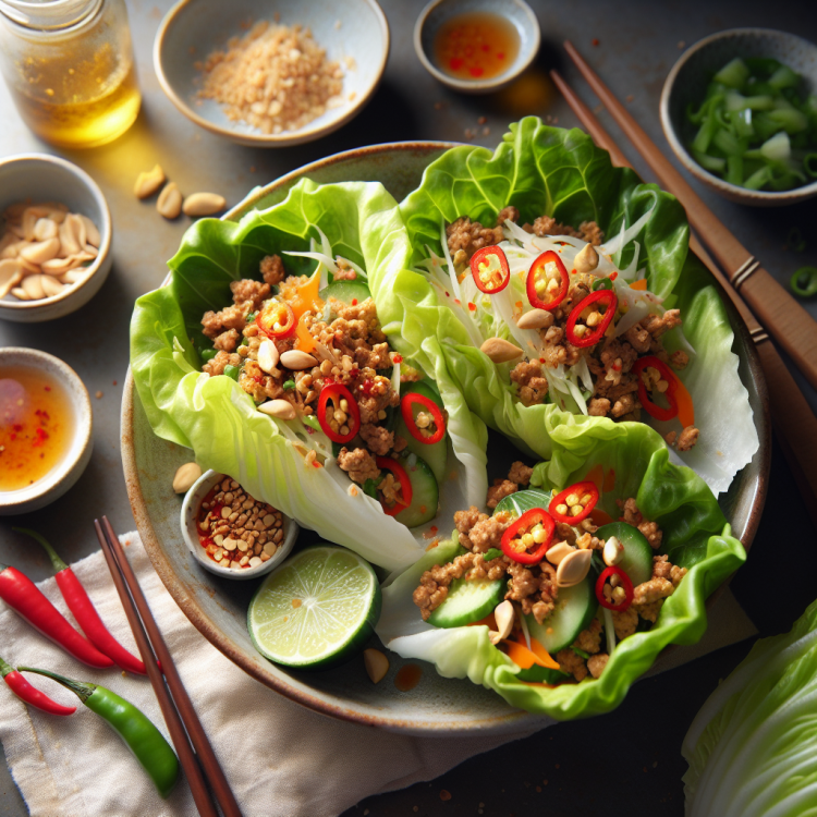 Serve in lettuce leaves with cabbage, bell pepper, and peanuts.