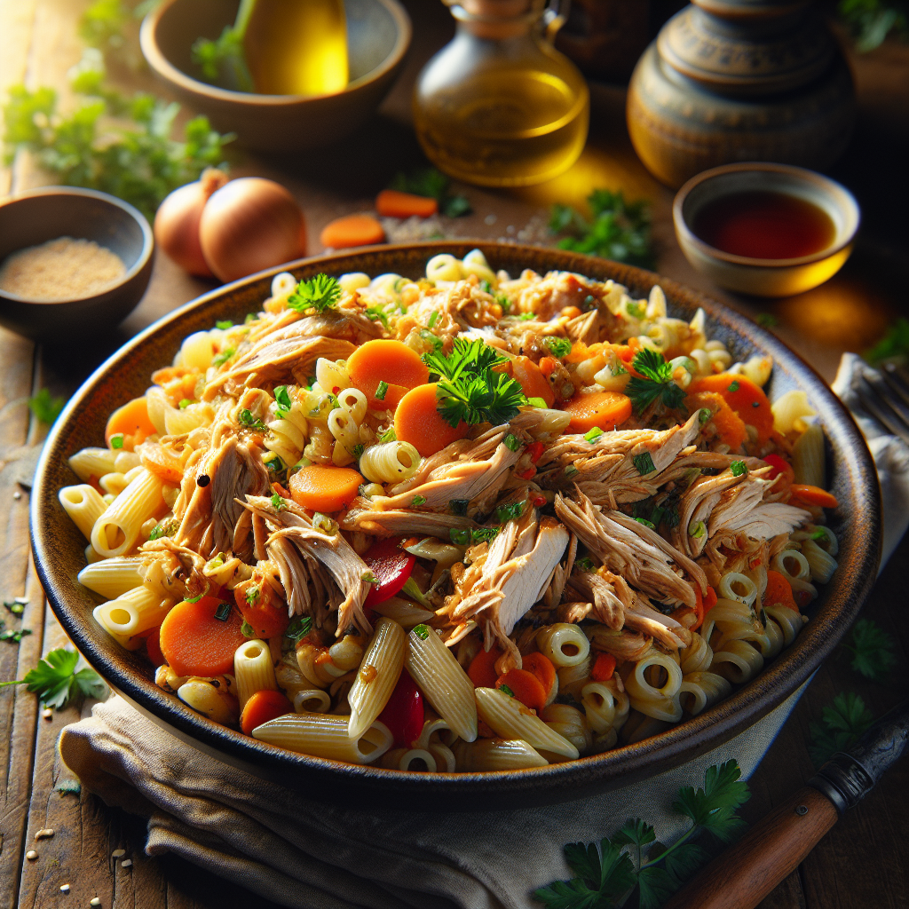 Add chicken, pasta, rice, soy sauce, and honey. Stir-fry for 5-7 minutes.