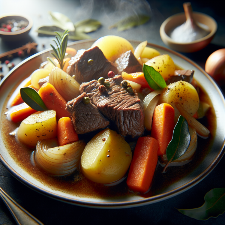 - In a large pot, combine reserved beef and sauce with potatoes, carrots, onions, and beef broth.