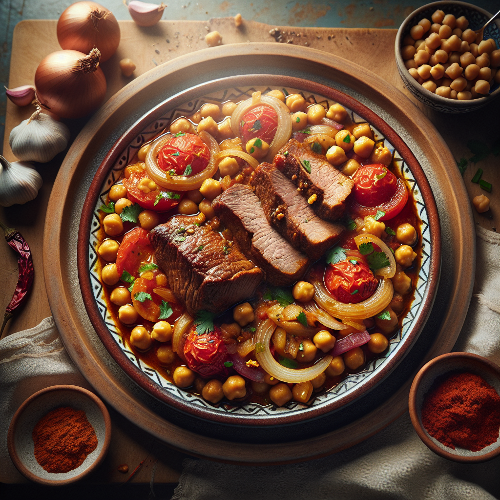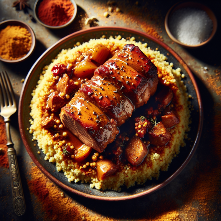 > Harissa Pork Loin with Roasted Vegetables, Tunisian Pork and Chickpea Stew, Spiced Couscous with Pork Stew, Pork and Couscous Salad