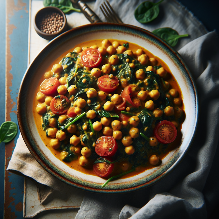 Stir in chickpeas, coconut milk, and spinach. Simmer for 15 minutes. Season with salt and pepper.