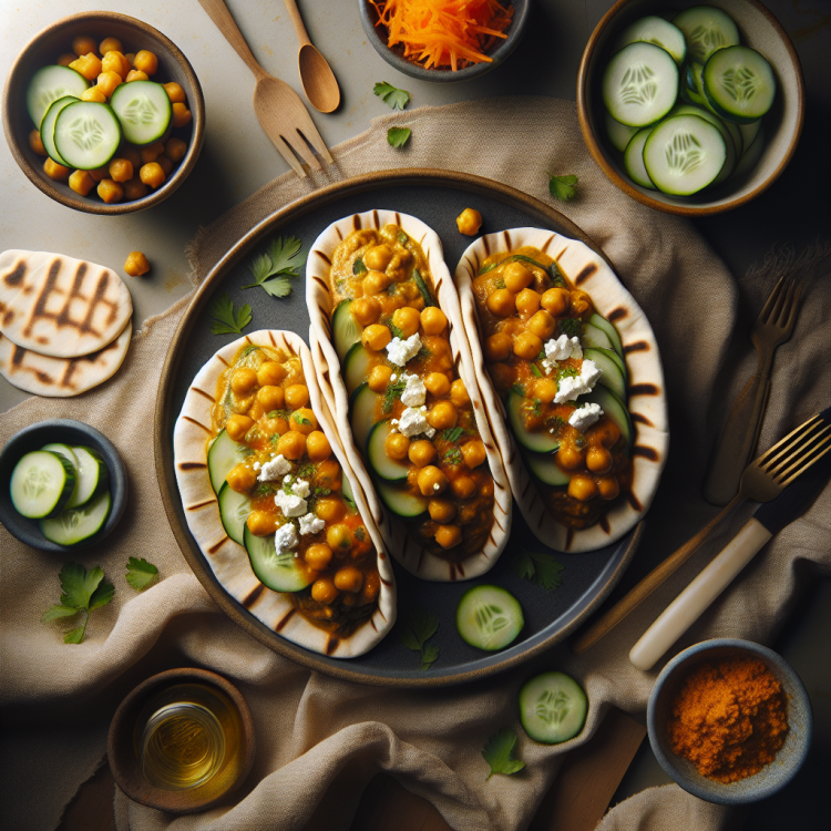 Stuff each pita with chickpea curry, cucumber, carrot, and feta cheese.