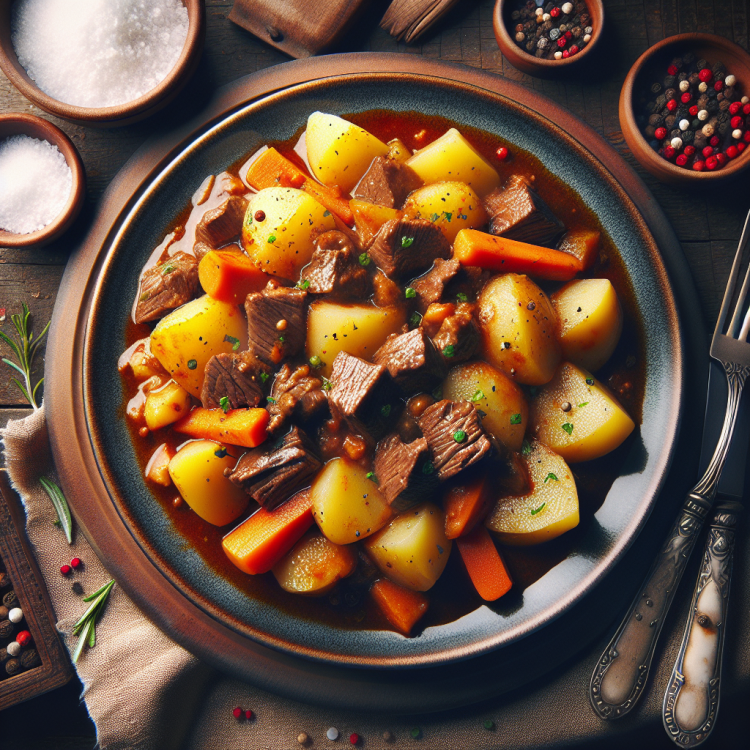 - In a large pot, combine reserved beef paprikash, potatoes, carrots, beef broth, and bay leaves.